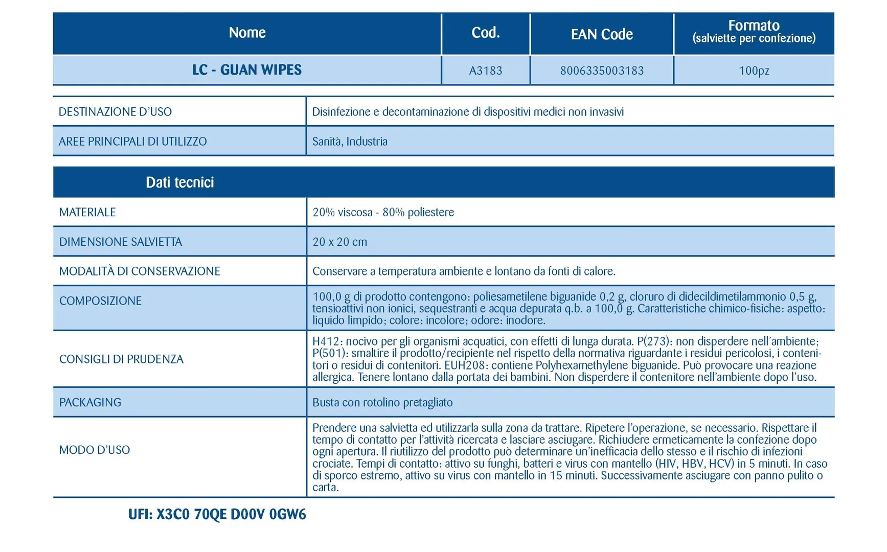 LC - GUAN WIPES - Panni disinfettanti